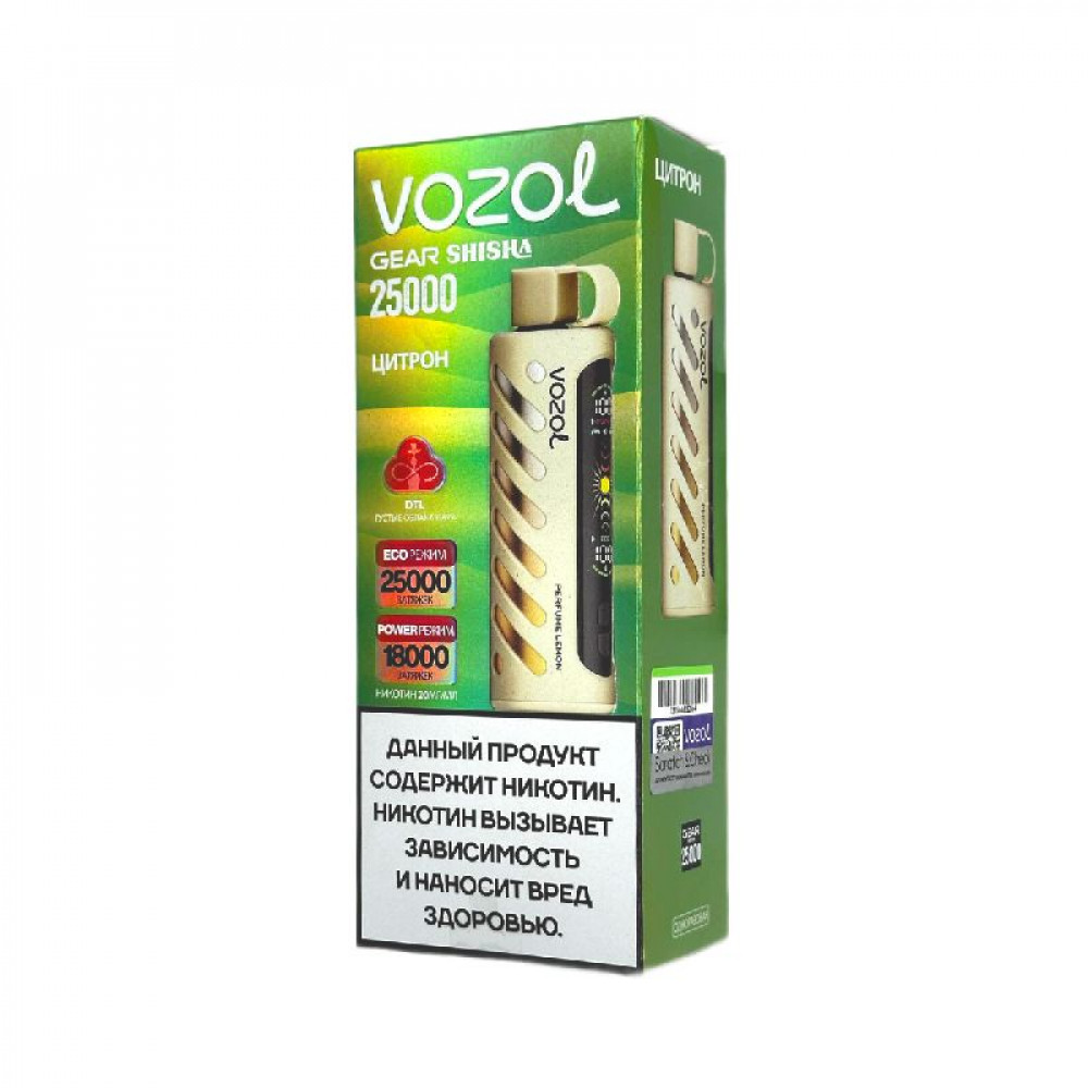 Технические характеристики Электронная сигарета Vozol Gear Shisha 25000 затяжек - Цитрон