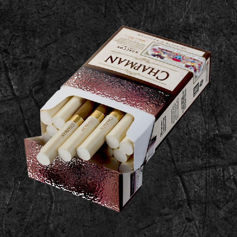 • Стильная упаковка: дизайн пачки сигарет Chapman выполнен в элегантной и минималистичной манере, идеально дополняющей образ современного человека.